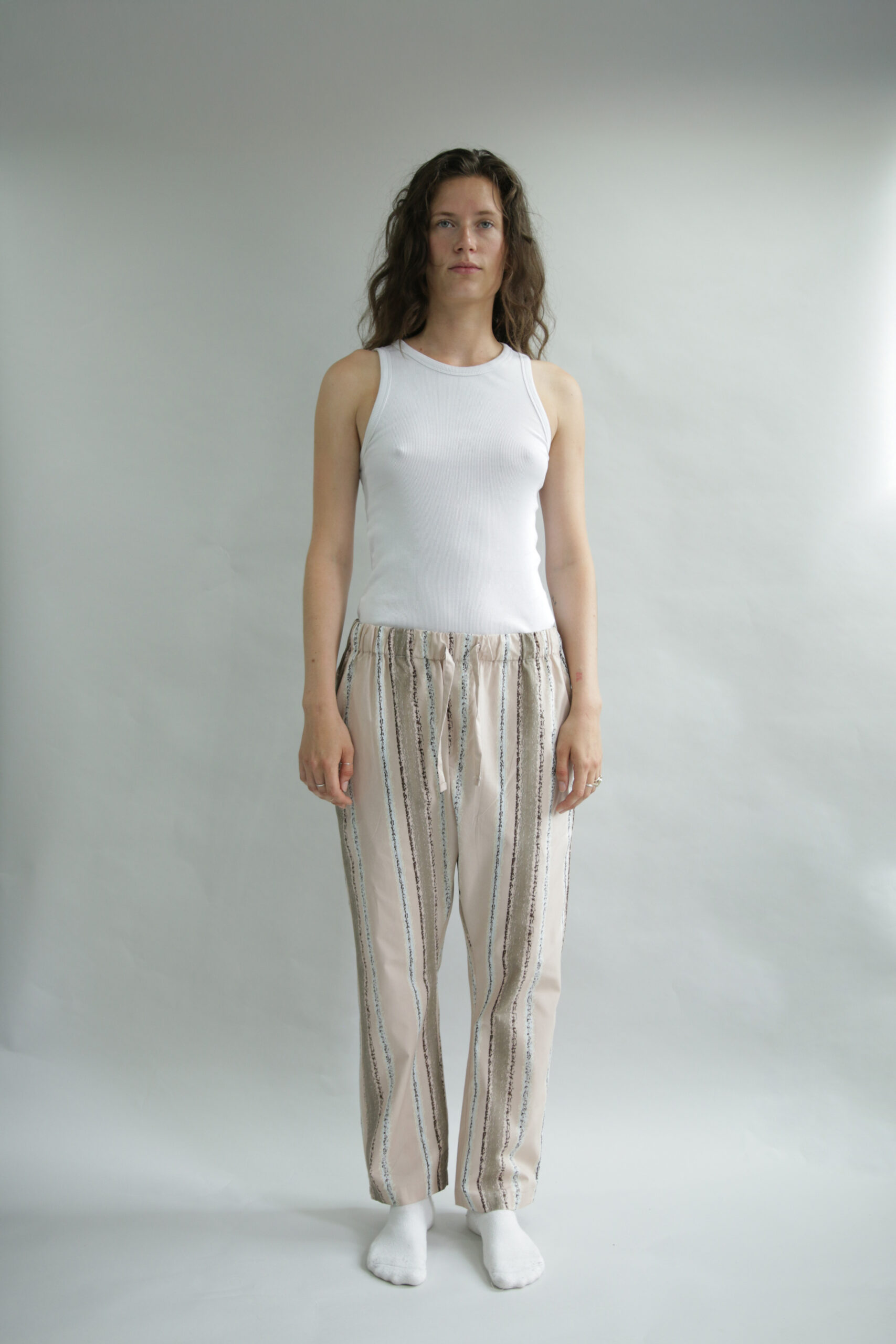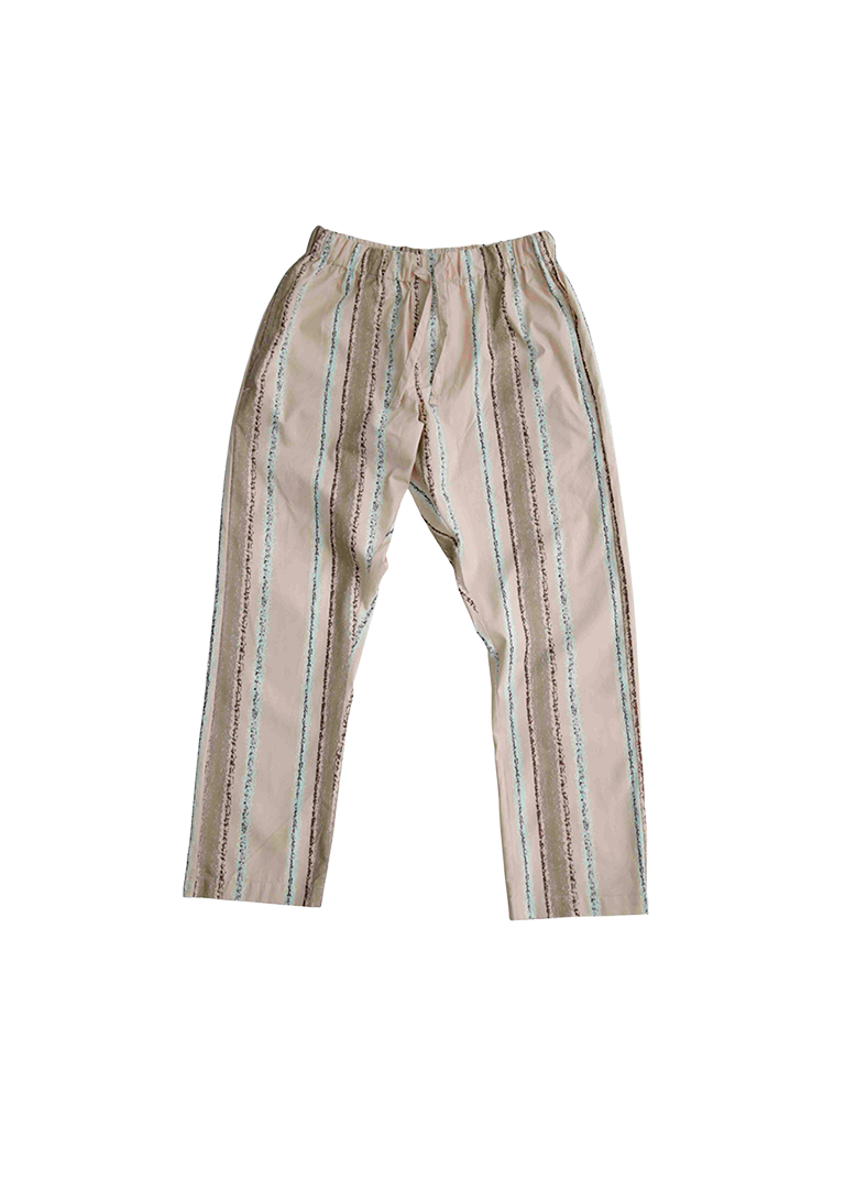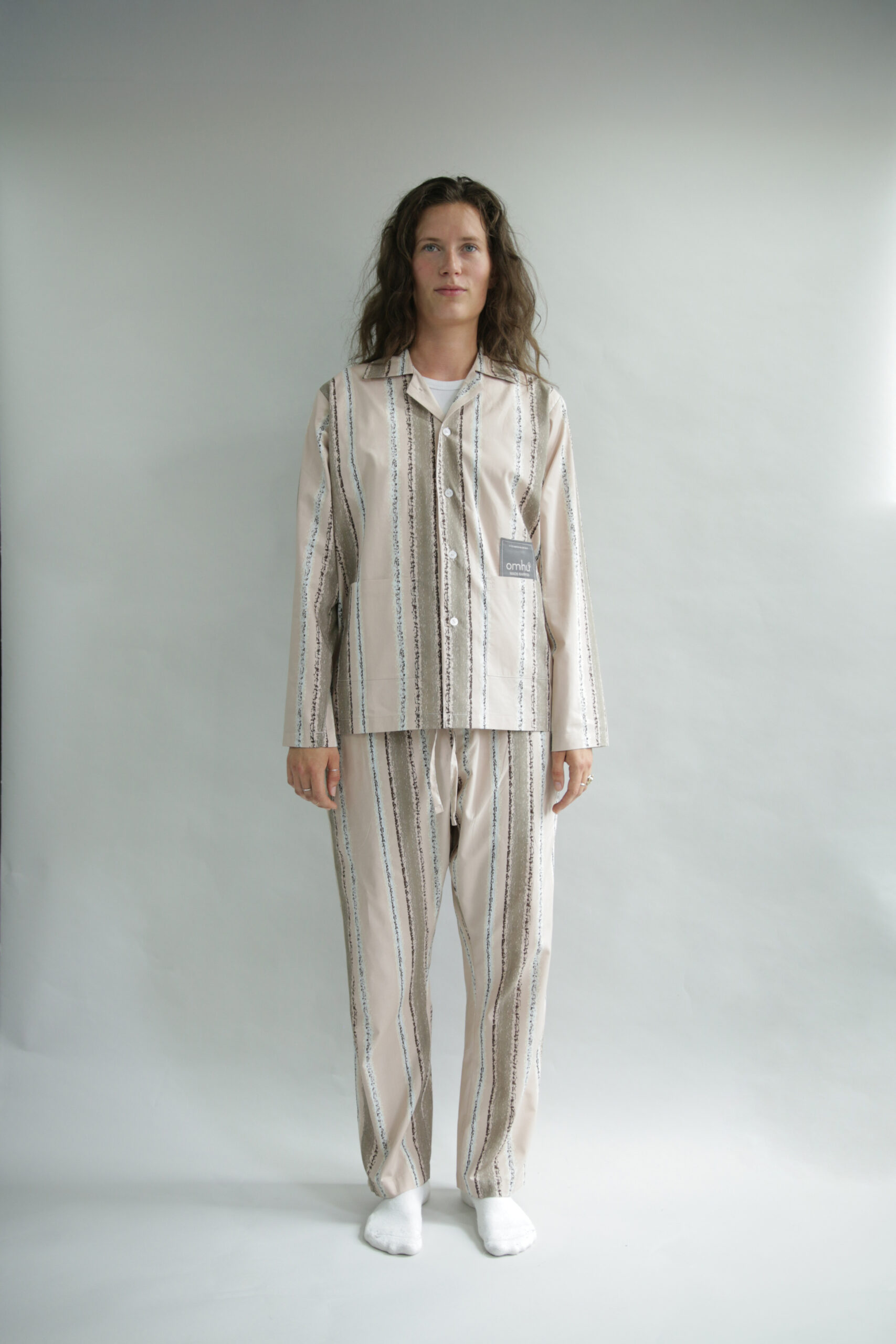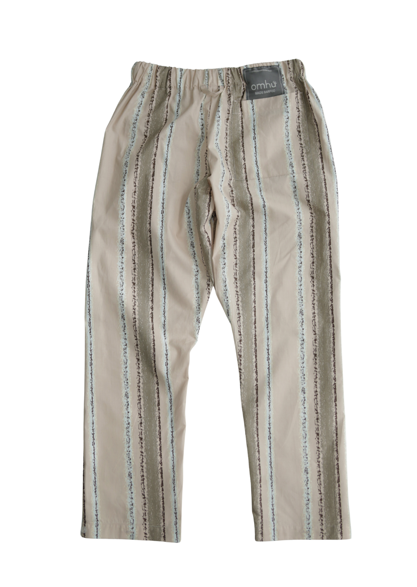 OMHU X MADS BARFOD PERCALE BUKS, SLUMBER – Gå til ro med stil og omtanke. OMHU x Mads Barfod percale-bukser “Slumber” er en del af et kreativt samarbejde, hvor design møder drøm. Skjorten er skabt i 100% økologisk bomuldspercale (TC 200) med unikt, kunstnerisk print, der refererer til tyrkiske bade og det bløde spil af lys og striber gennem vand. Det giver et let og tekstureret udtryk – som at bære en drøm. Bag samarbejdet står en fælles vision: at skabe noget, der både rummer Mads Barfods visuelle poesi og omhu’s kompromisløse tilgang til kvalitet, bæredygtighed og tidløs æstetik. Skjorten er fremstillet i certificeret økologisk bomuld og bærer stolt mærker som GOTS, Fairtrade, Svanemærket, OEKO-TEX og SA8000 – din garanti for ansvarlig produktion og højeste tekstilkvalitet. Unisex pasform.
